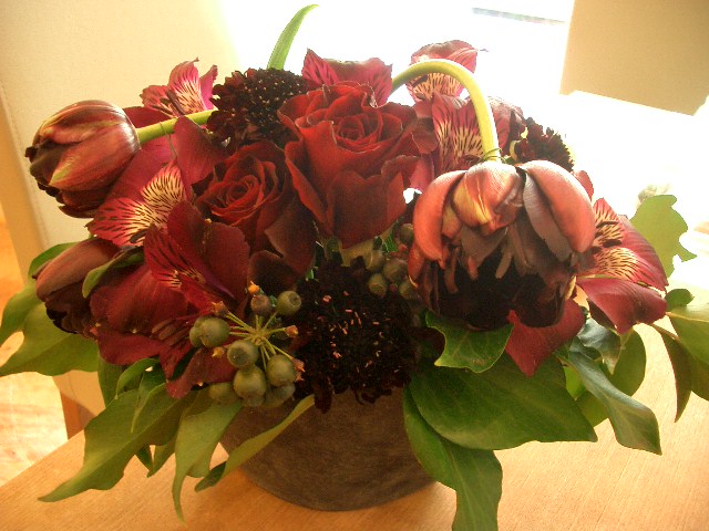 かわいいイメージが強いチューリップ。ダークカラーで大人っぽく。