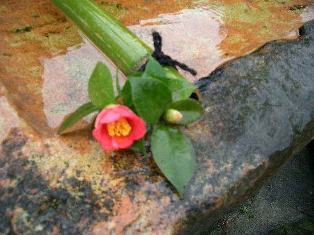 この季節の花といえば、椿。雪化粧も美しい。