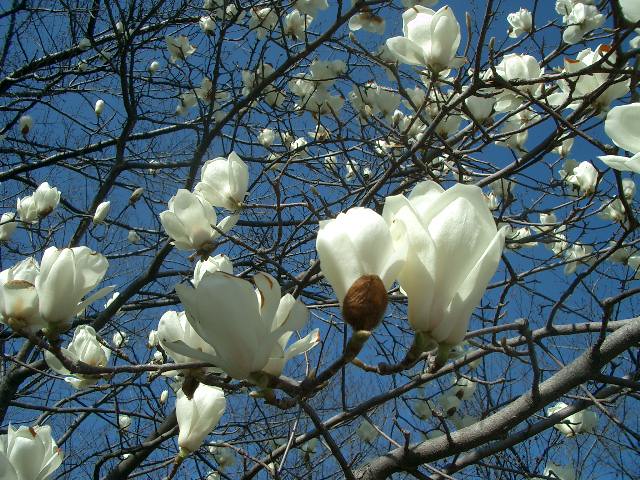 街路樹の木蓮。青空に映える白。